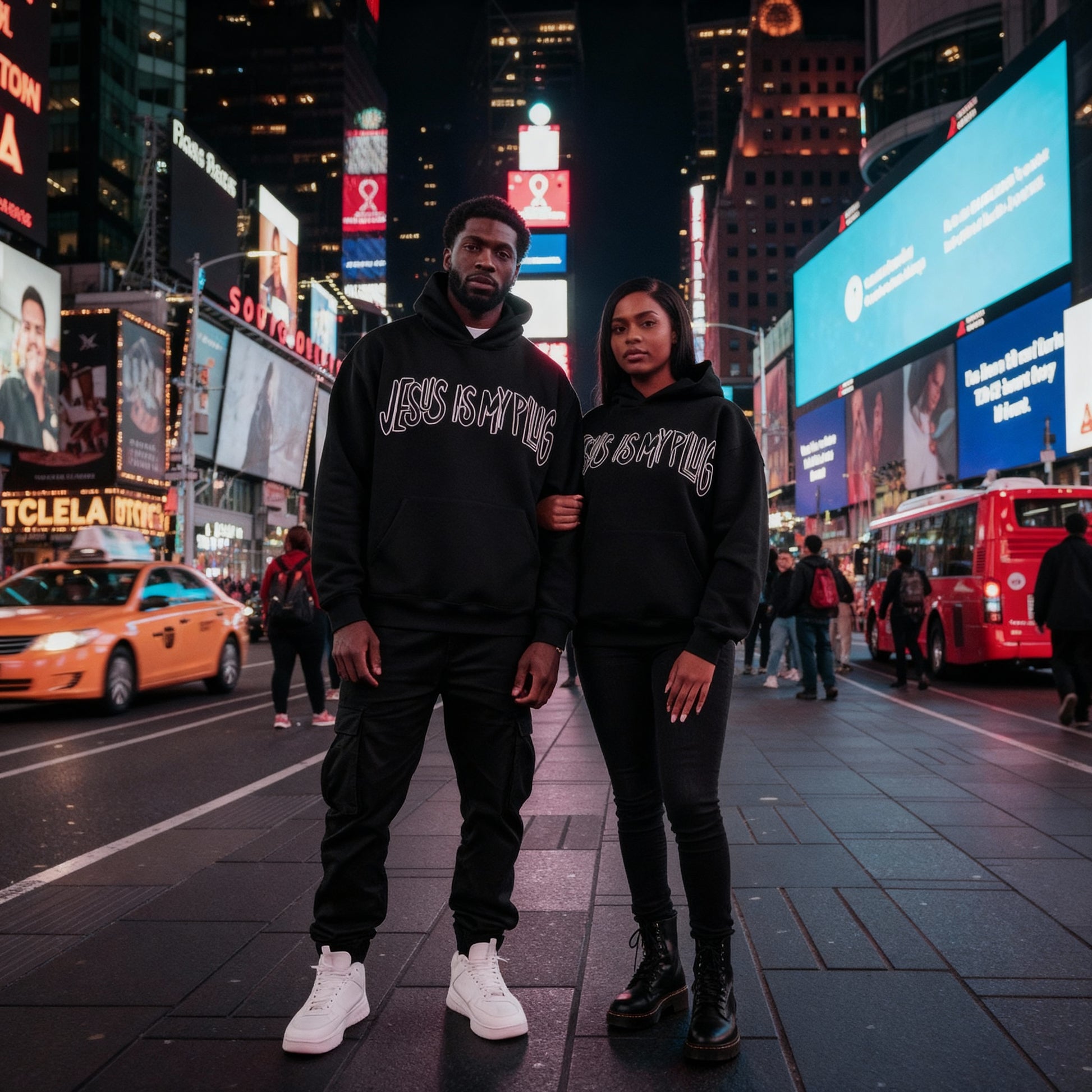 Built with a modern streetwear fit, this hoodie offers warmth and structure while remaining soft and breathable. The bold “Jesus Is My Plug” statement across the chest sparks conversation and represents faith as the true source of strength, peace, and provision.